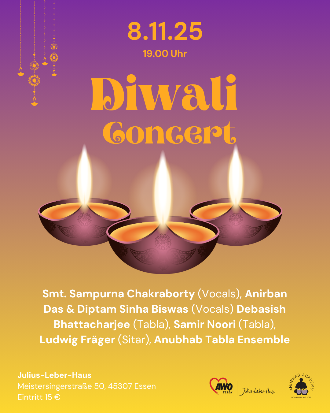 Die Anubhab Academy lädt ein in das Julius-Leber-Haus in Essen, um gemeinsam Diwali zu feiern!